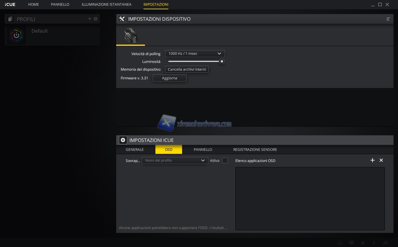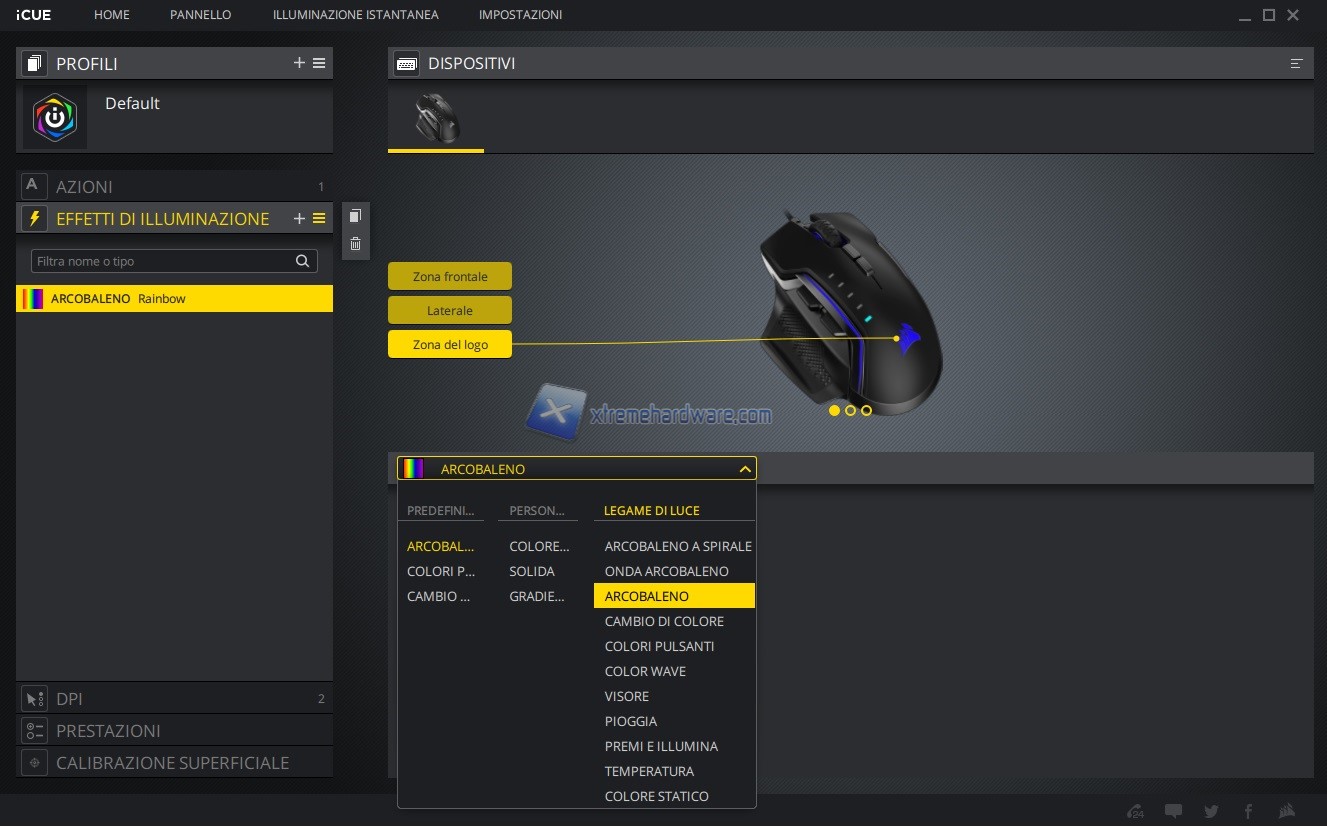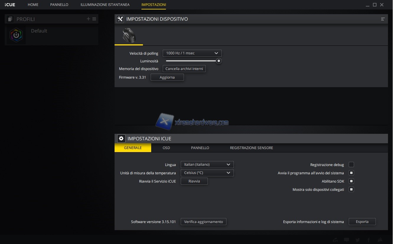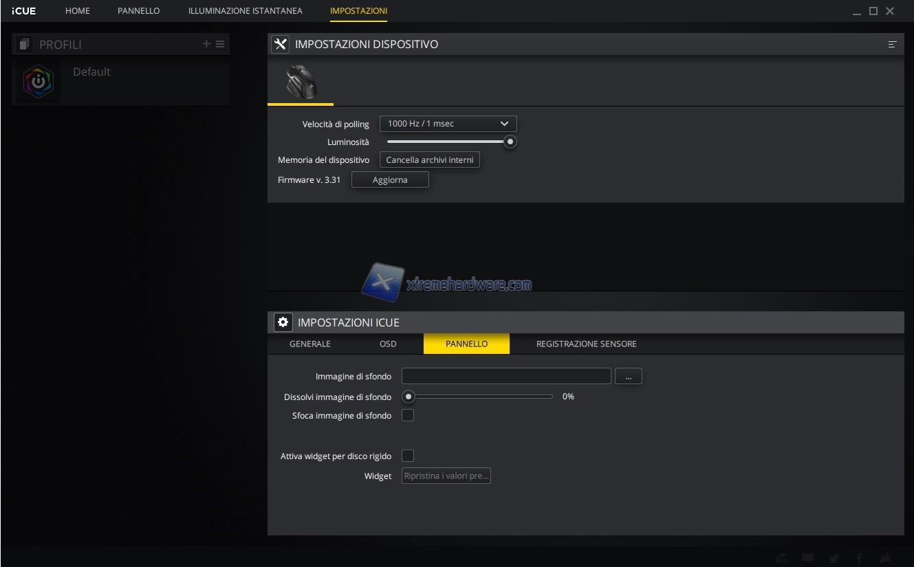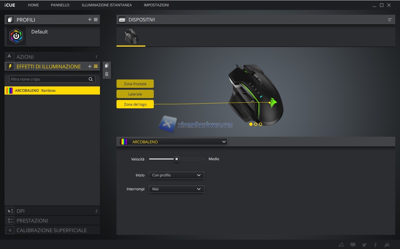 In questo capitolo invece vi riportiamo tutte le immagini relative l’ormai conosciuto e famoso software di gestione di periferiche e componenti Corsair iCUE. Software sicuramente molto completo e a mio avviso molto intuitivo. Tramite il software potremo agire sia sull’assegnazione dei tasti e relative funzioni sia sulla retroilluminazione RGB a 3 Zone sia sulle prestazioni del sensore con regolazione DPI, creazione Profili DPI ad hoc, cambio Polling Rate, attivazione dell’Angle Snapping, calibrazione della superficie di utilizzo e molto altro ancora. Le immagini parlano molto chiaramente.