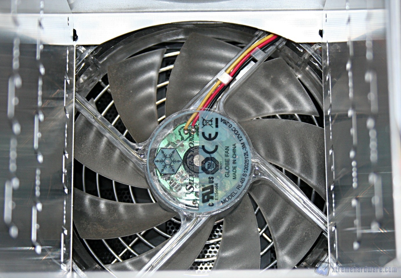 Fatto questo consigliamo l’installazione dei dischi rigidi, facendo attenzione a posizionarli in serie nella struttura predisposta. Fatto questo sarà necessario montare il lettore DVD: dovrete togliere le mascherine frontali e sostituirle con l’unità ottica, per poi riavvitare e serrare lateralmente. Fatto questo, si passerà all’installazione della scheda madre. Se si possiede un dissipatore Intel, tramite il solito sistema push-pin, sarà possibile installarlo successivamente, altrimenti se volete potete già procedere ad installare il backplate del dissipatore della CPU, facendo attenzione a stendere un sottile velo di pasta termica alla base della CPU stessa. In sostanza, se la vostra scheda madre non è mini-ITX, dovrete prima montare i distanziatori nei fori per il formato ATX, serrarli molto bene – consigliamo una pinza larga 1cm durante quest’operazione, su ogni cabinet – e poi apporre la scheda madre, serrandola con le viti fornite nella confezione. Se avete un dissipatore aftermarket potete utilizzare il foro posteriore, che è molto pratico e vi aiuterà non poco all’atto della procedura. Dopo aver montato il dissipatore sulla scheda madre, sarà necessario montare la scheda video, le RAM ed infine procedere all’assemblaggio dei cavi di connessione del cabinet alla scheda madre. Per fare un lavoro pulito consigliamo l’utilizzo delle fascette restringenti fornite in bundle. A titolo informativo riportiamo il cablaggio eseguito posteriormente, ma state certi che con una maggiore cura ed attenzione ai particolari il lavoro sarà ancora migliore. Terminata l’operazione vi consigliamo di connettere tutte le ventole che avete a disposizione. Ecco qui come si presenterà il case a lavoro terminato.