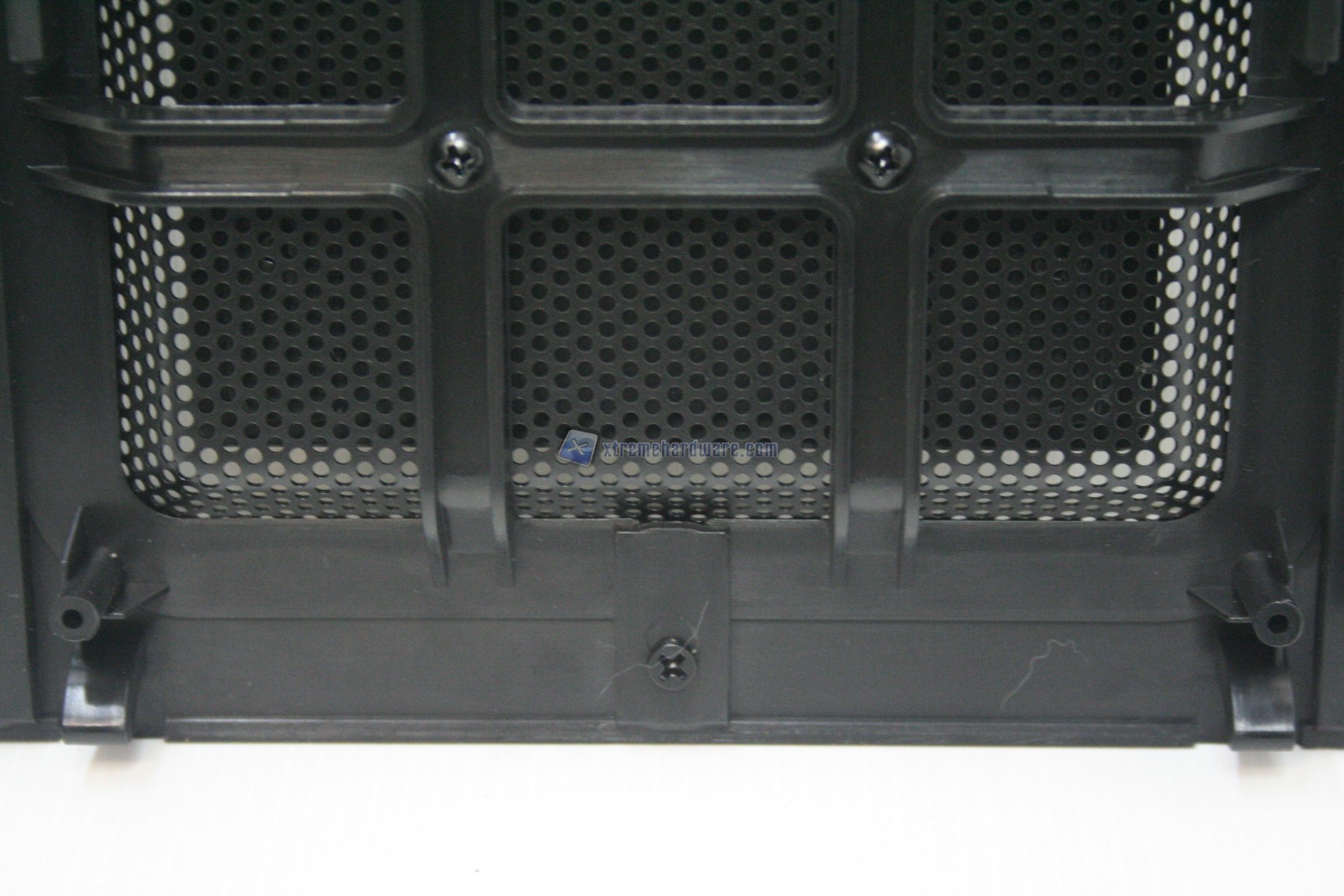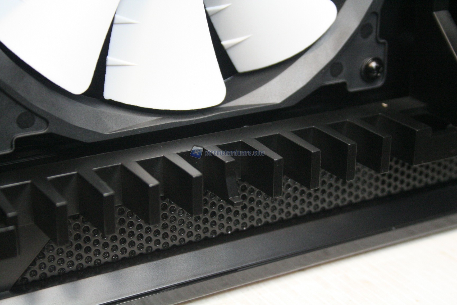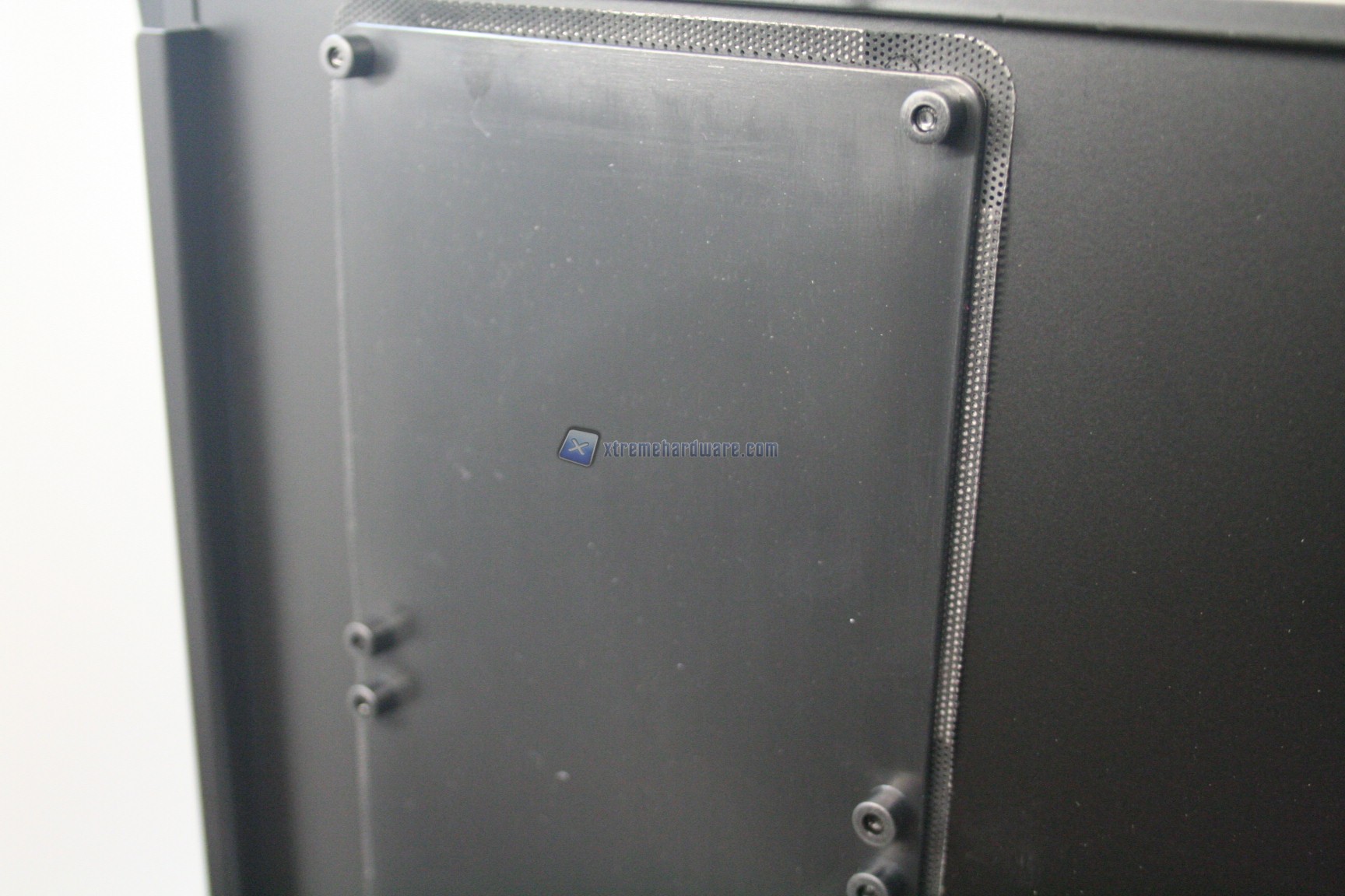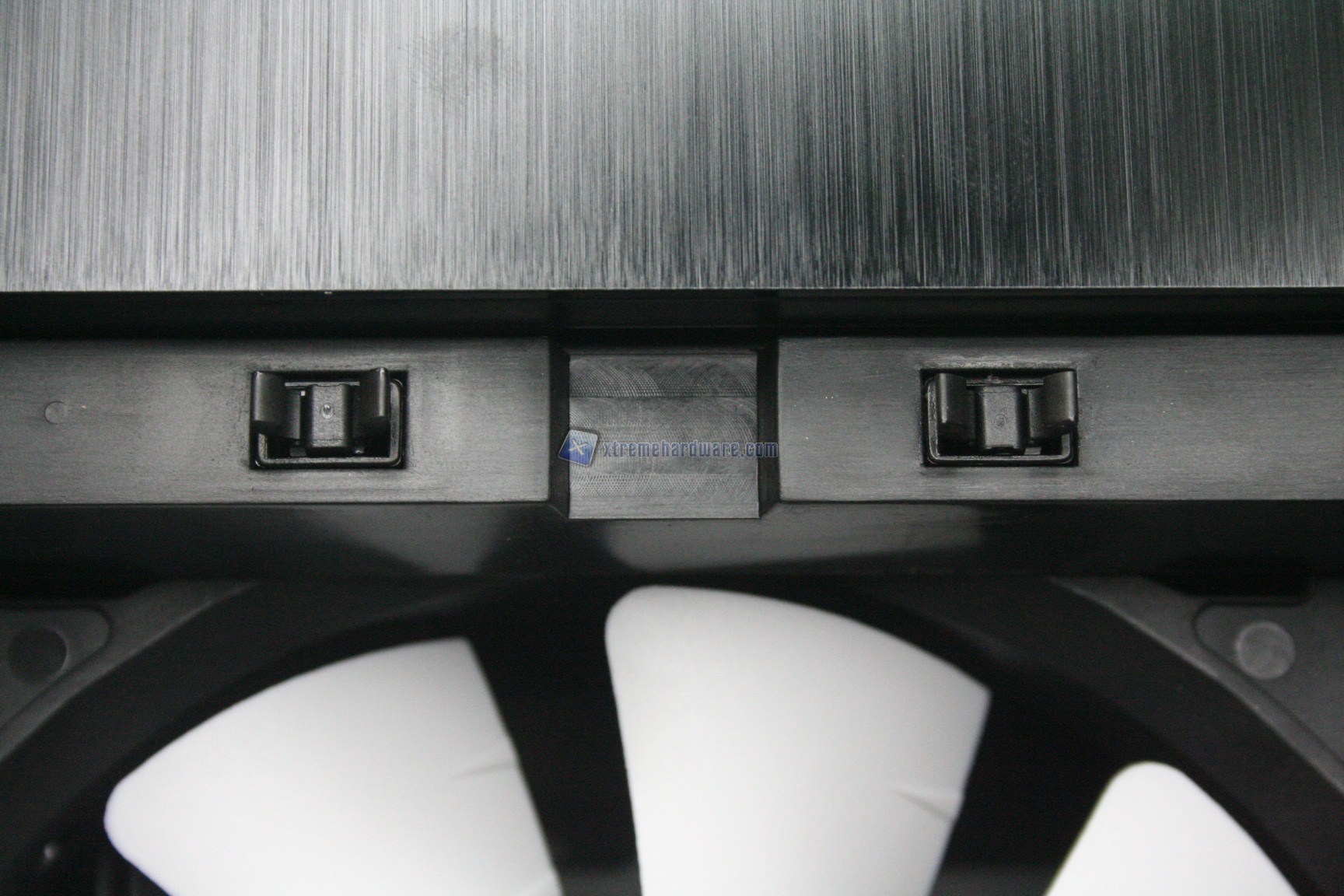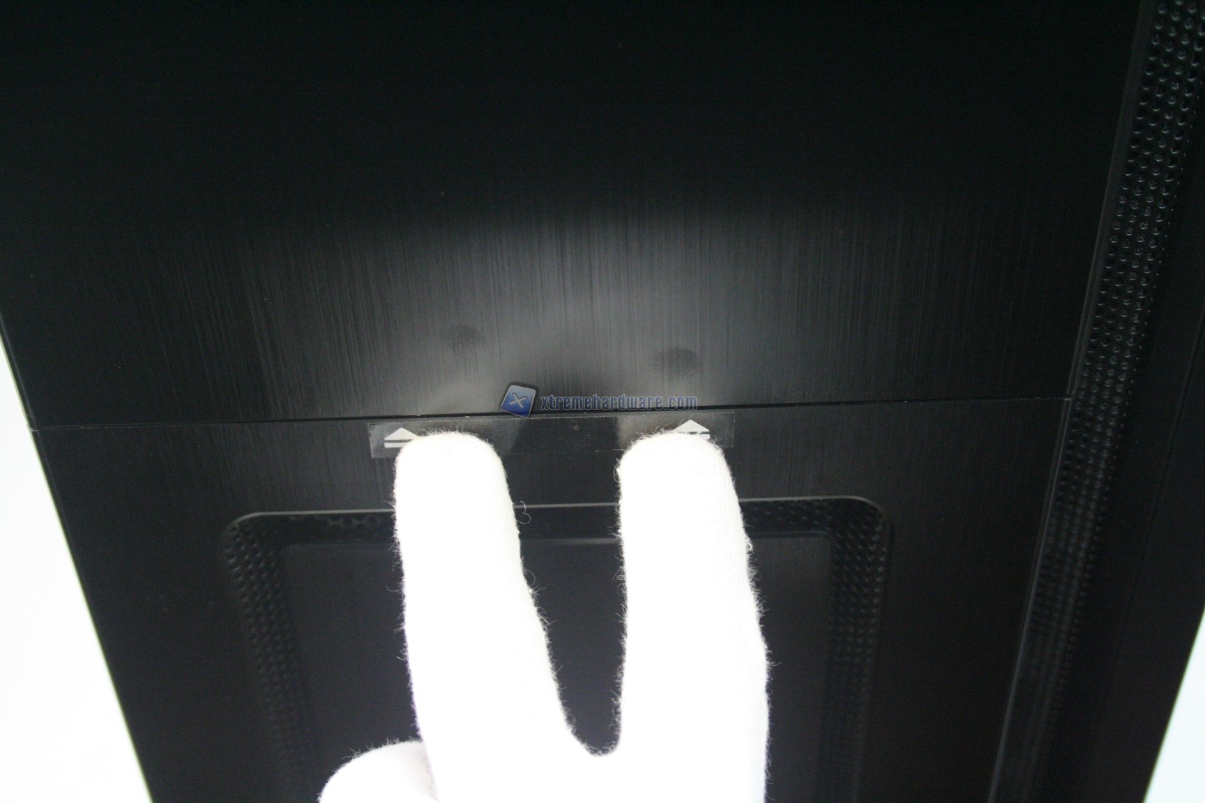 La parte frontale è caratterizzata da una struttura in alluminio spazzolato, sui generis. La parte inferiore è removibile e maschera una grande struttura contenente un filtro. Sotto quest’ultimo sono state preinstallate due ventole da 140mm. La paratia è apribile, in quanto c’è uno sportello ad apertura laterale, da destra verso sinistra. La finitura, come la realizzazione, sono eccelse.